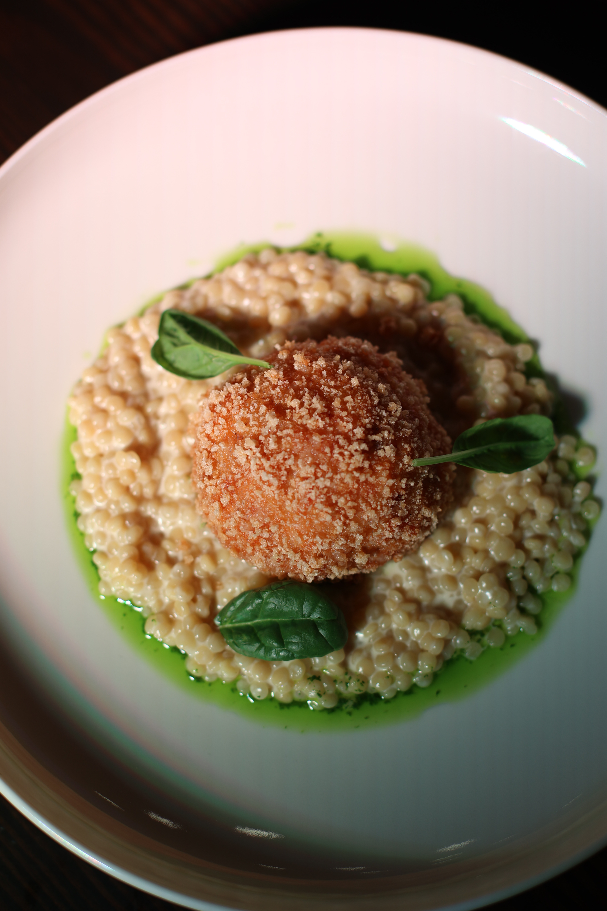 Котлета з фермерського курча з зеленню на пармезановому птітімі