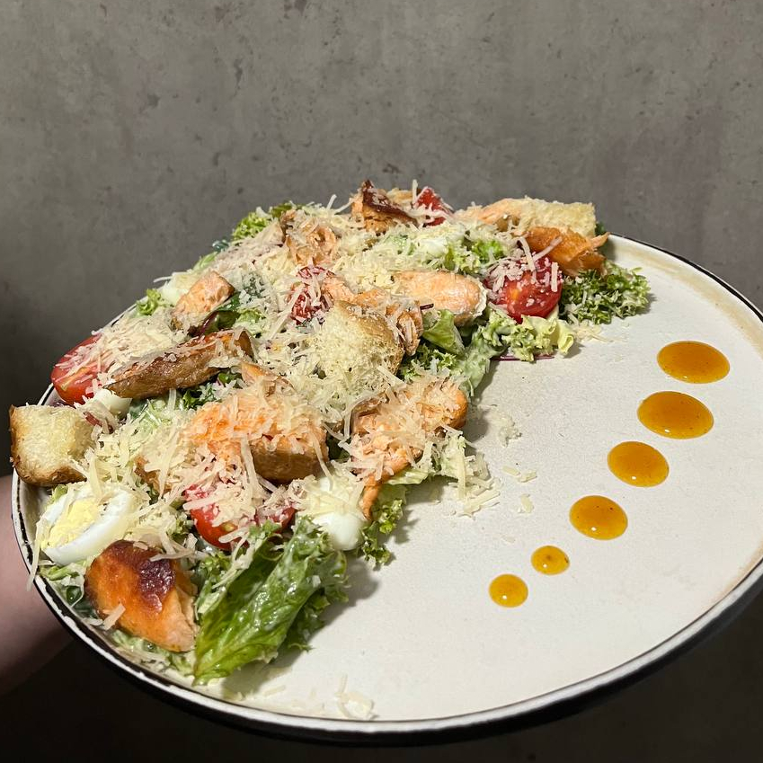 Салат з морепродуктами гриль з манговим соусом і стратчателлою